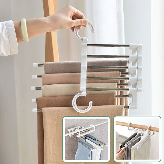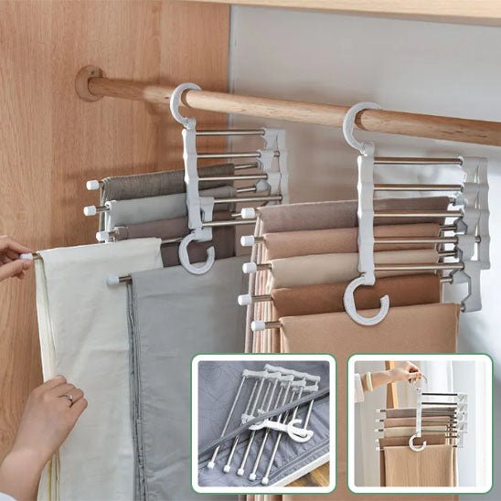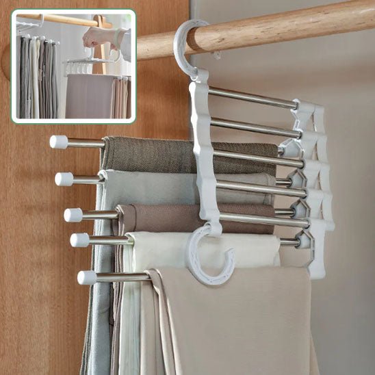 Ce produit innovant vous permet de suspendre plusieurs pantalons sur un seul cintre, optimisant ainsi l'espace dans votre penderie tout en gardant vos vêtements parfaitement organisés et accessibles.