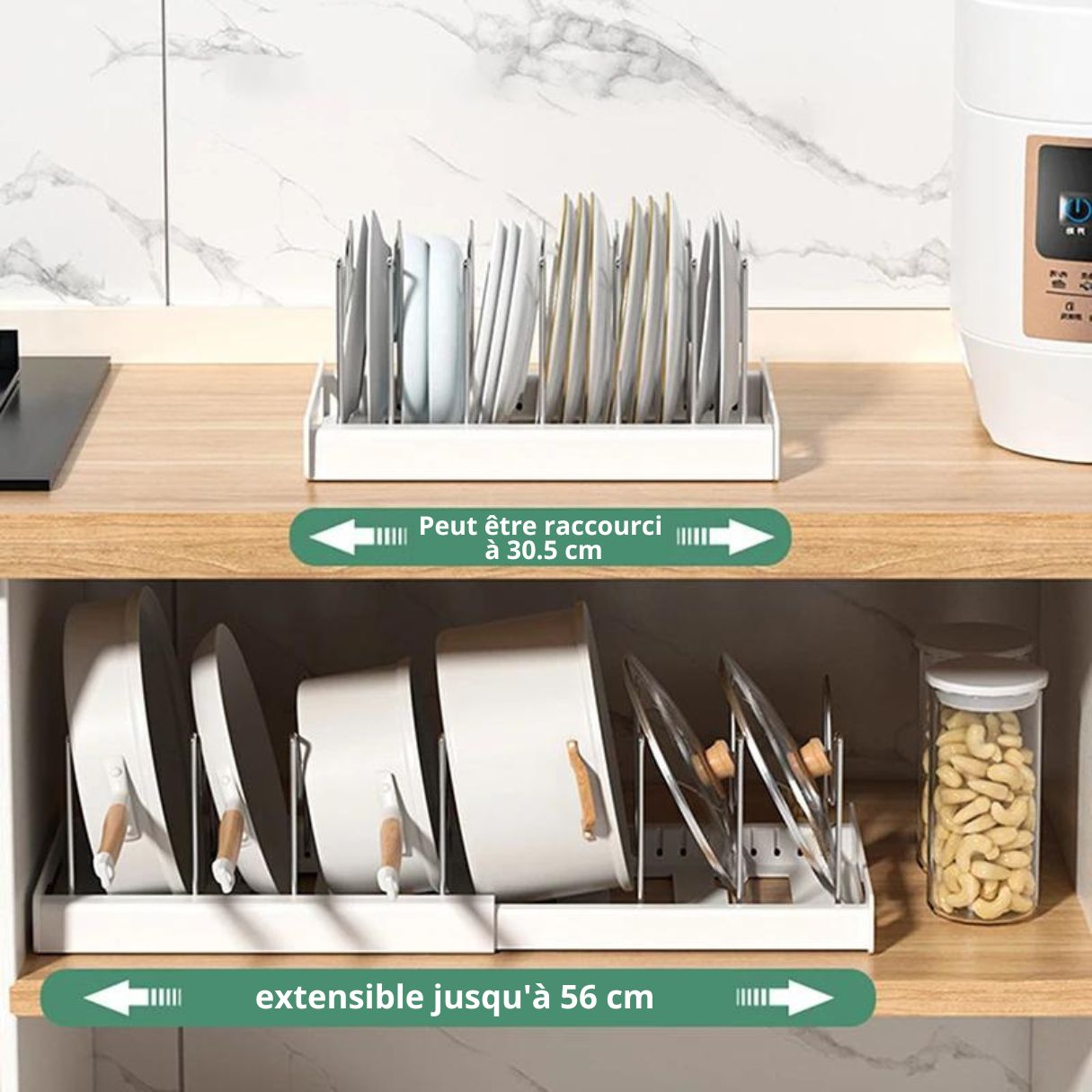 SIMPLIFIEZ VOTRE CUISINE AVEC NOTRE ORGANISATEUR DE COUVERCLES RÉTRACTABLE